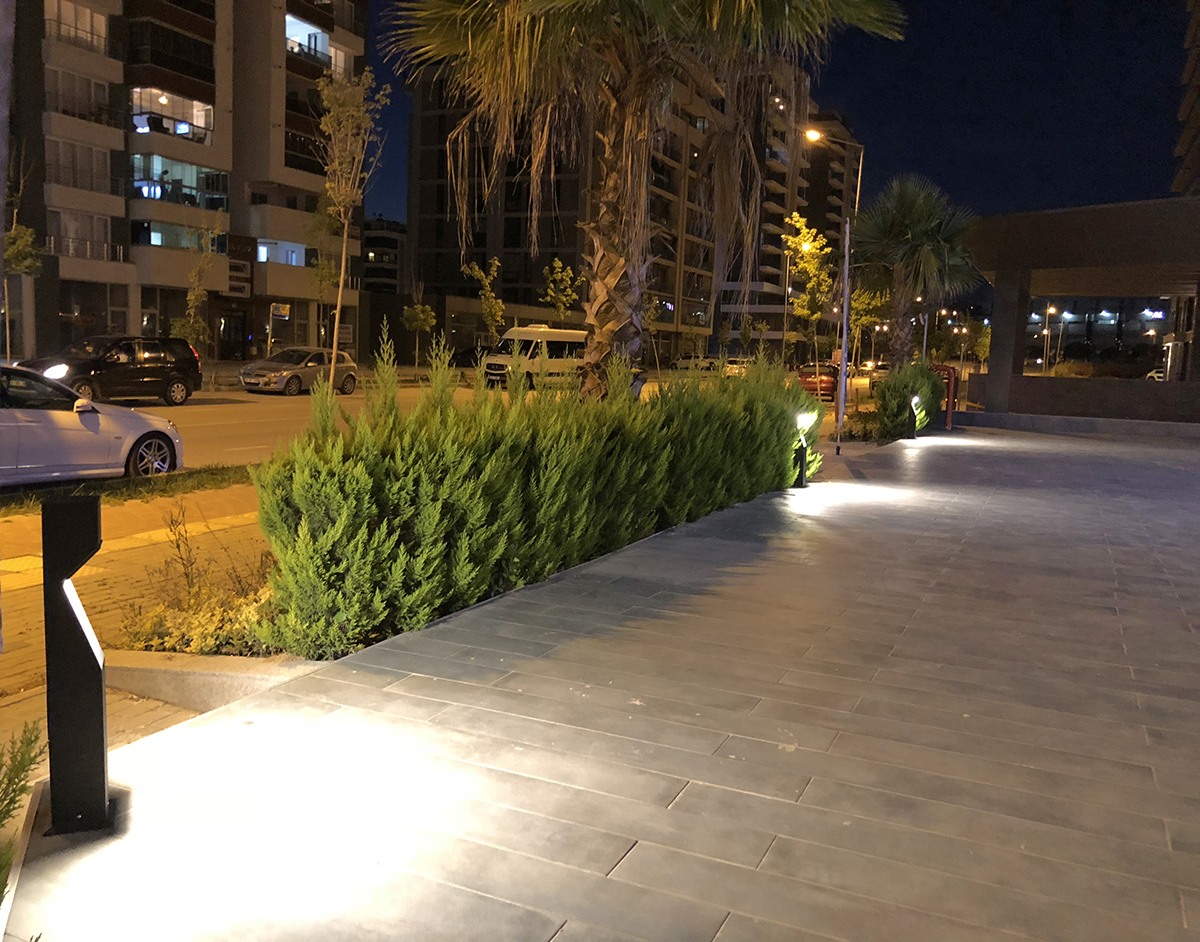 Office Gokcadir Business Center, which is located at the new life center of Bursa, preferred Lampeti Lighting's mirket series for outdoor illumination.