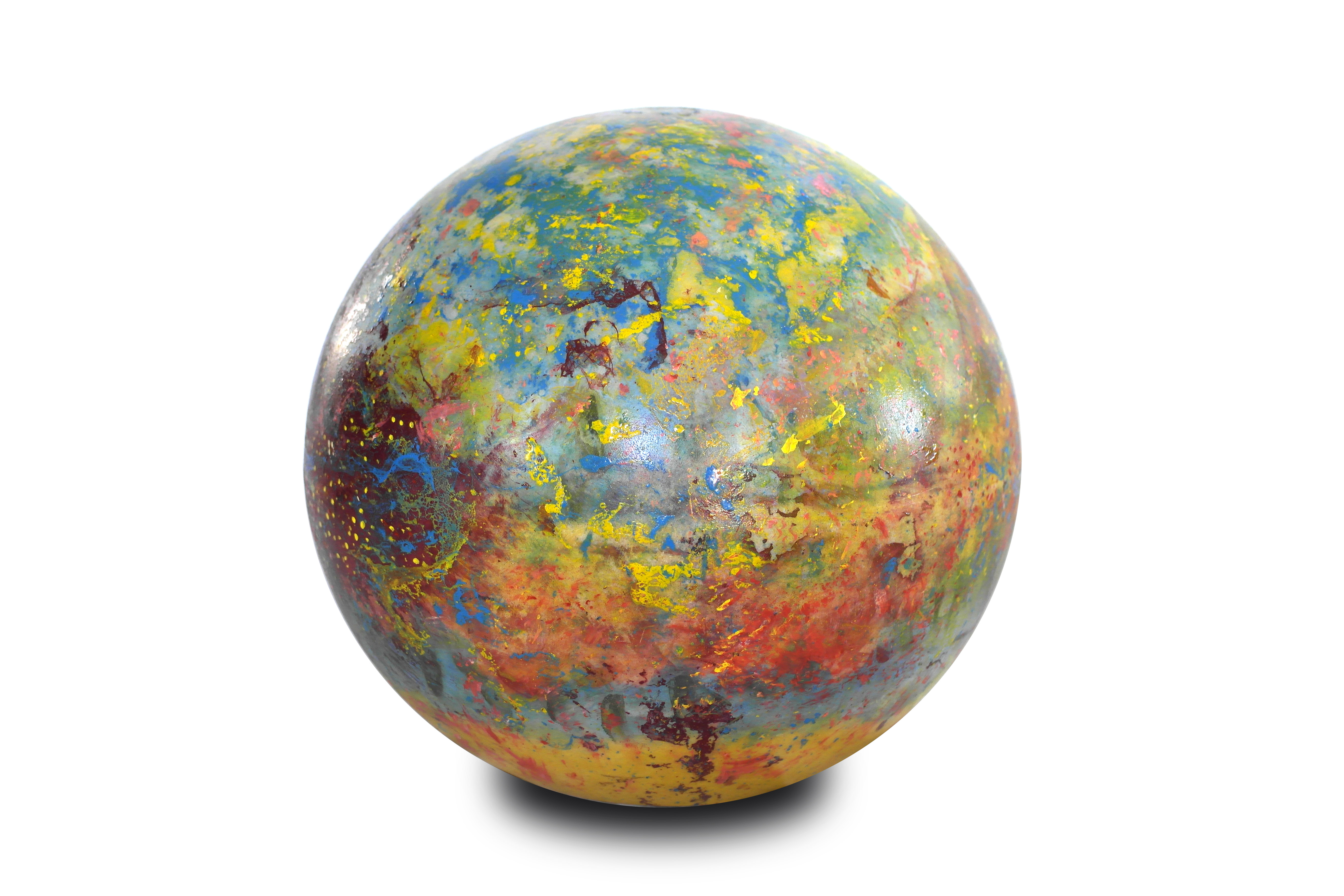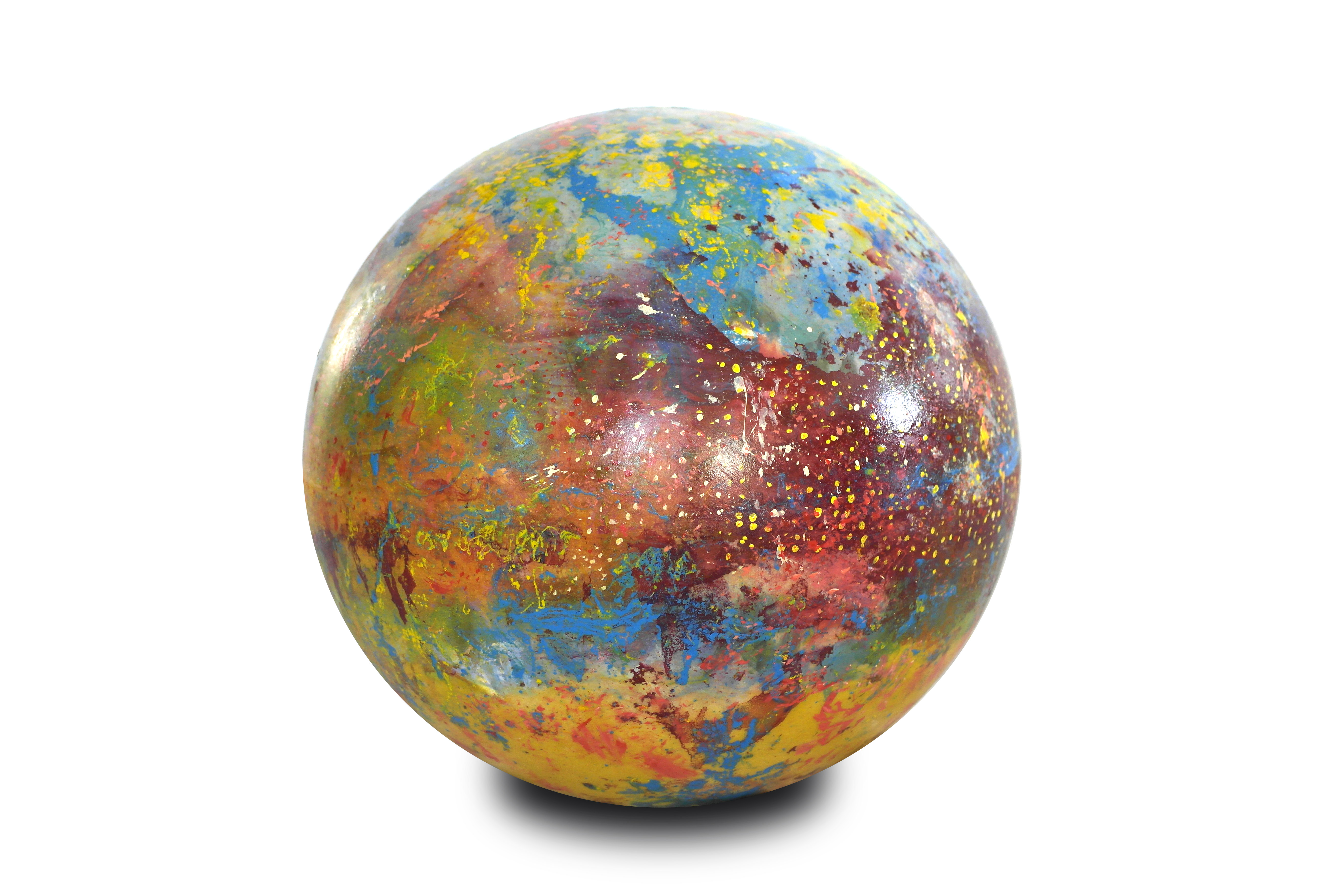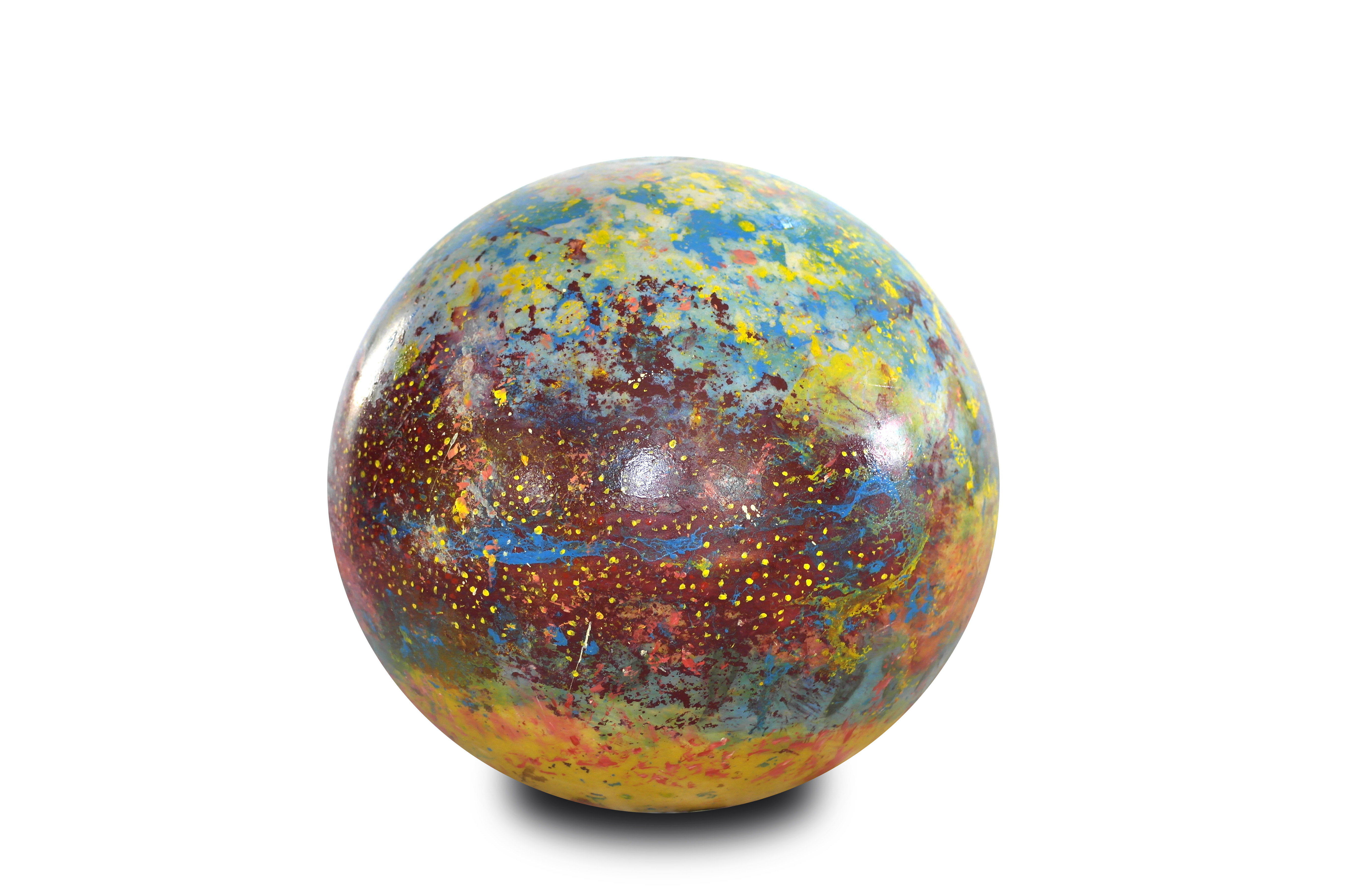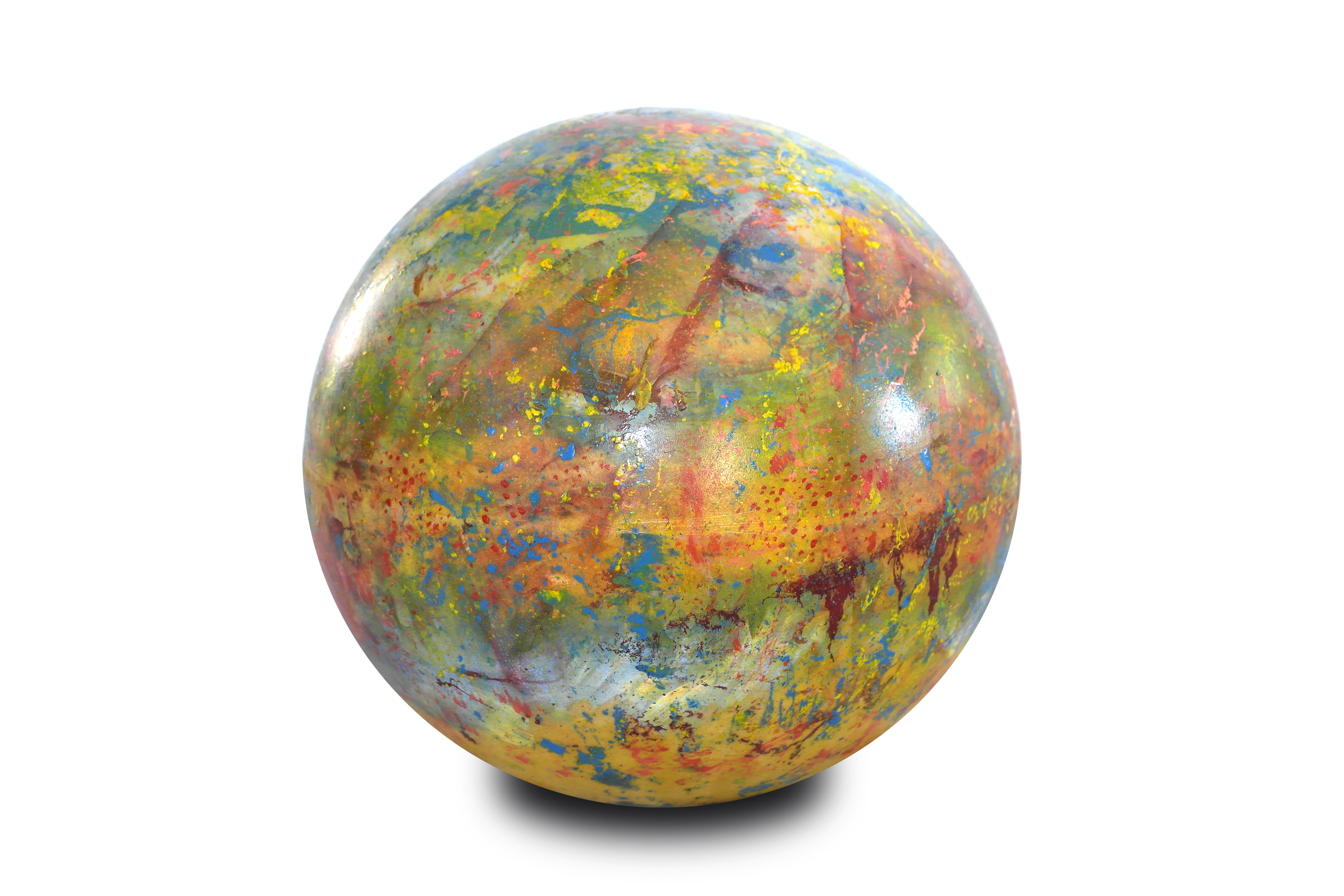 Poliüretan glop üzerine el boyaması olan “Genesis” isimli yeni çalışmamızda, koyu mavi ve sarı tonlarının oluşturduğu derin kontrastlar, aydınlatma küresine güçlü bir boyut kazandırıyor. Yeşilimsi tonlar ise bu etkiyi dengeleyerek kompozisyona doğal bir akış katıyor.