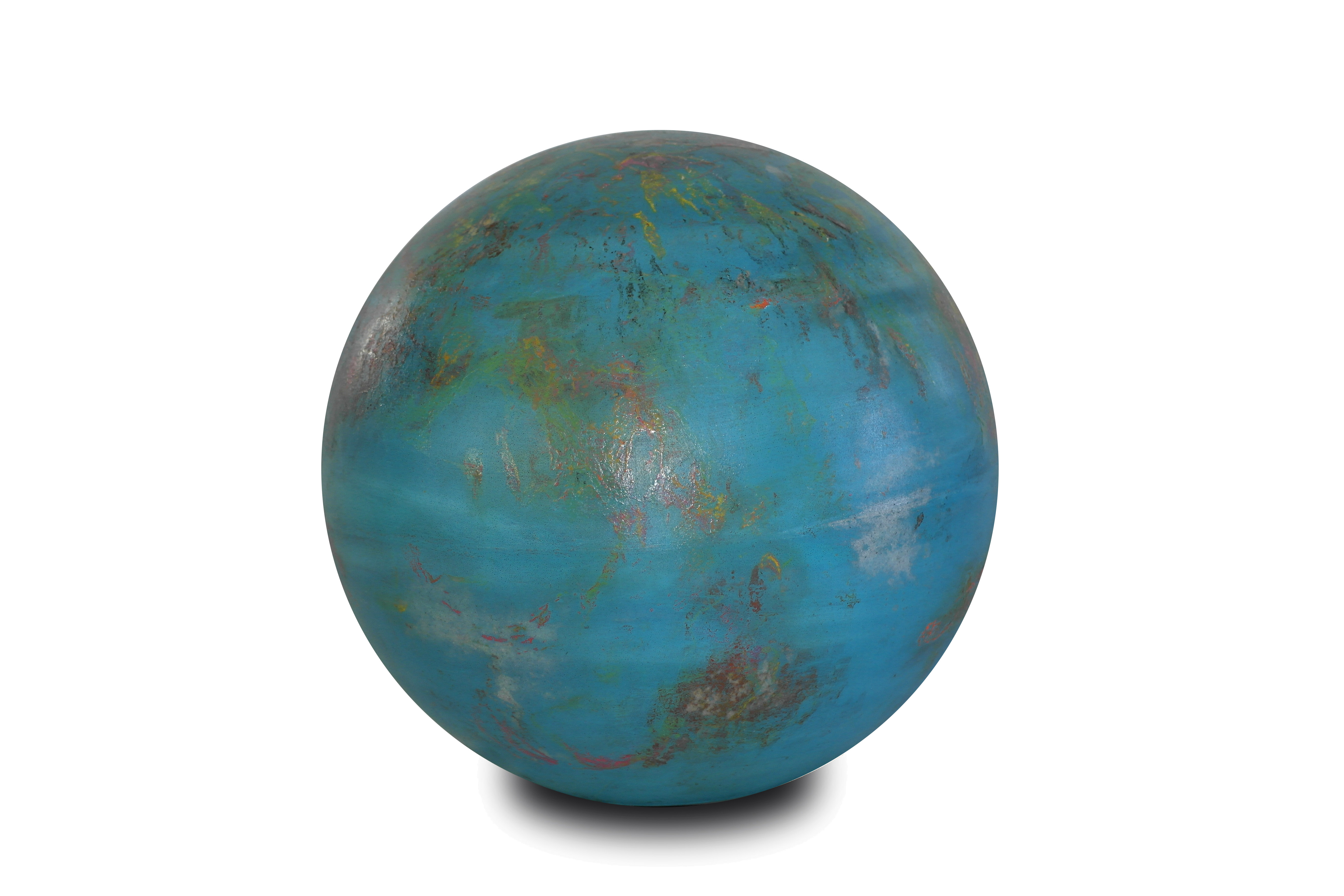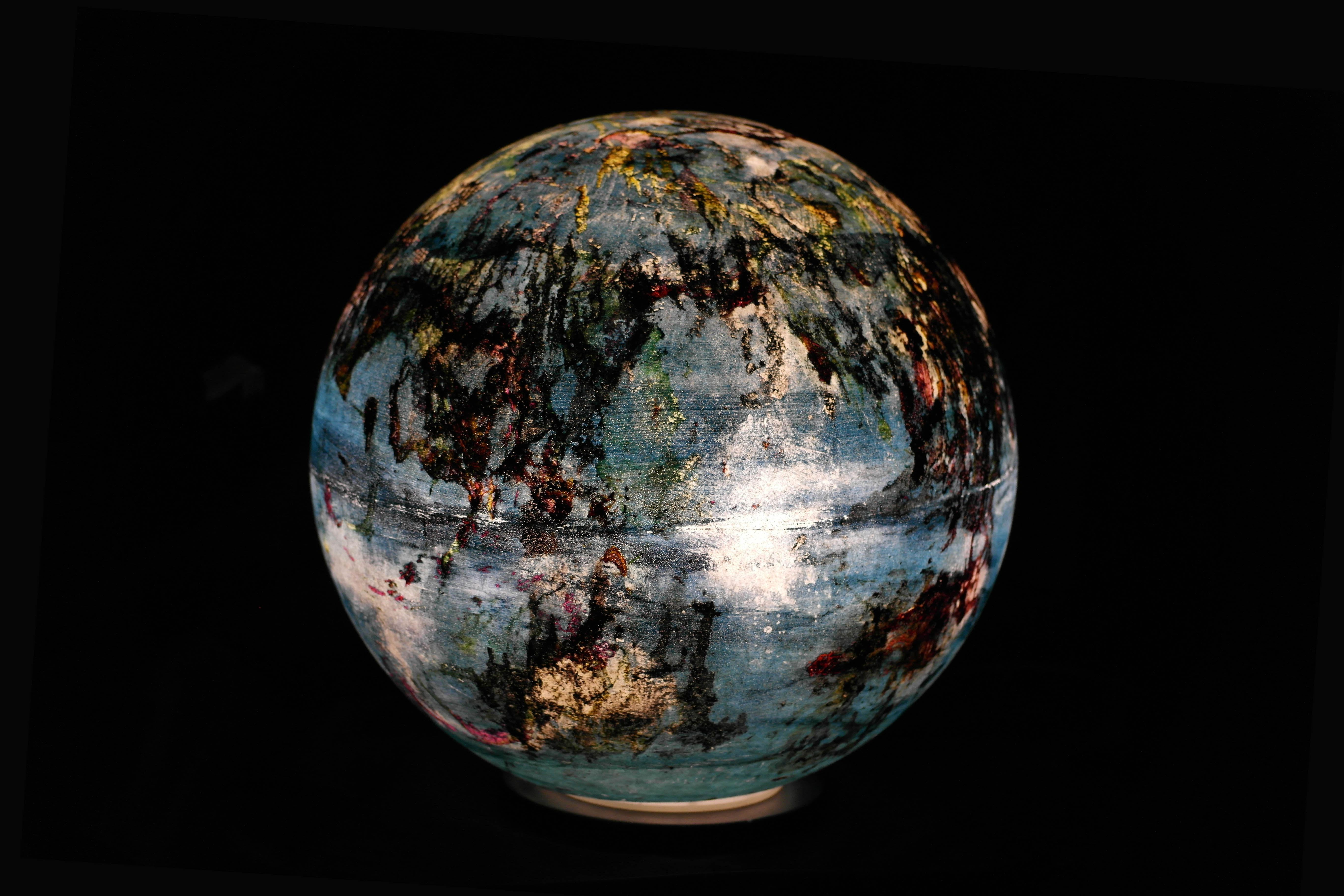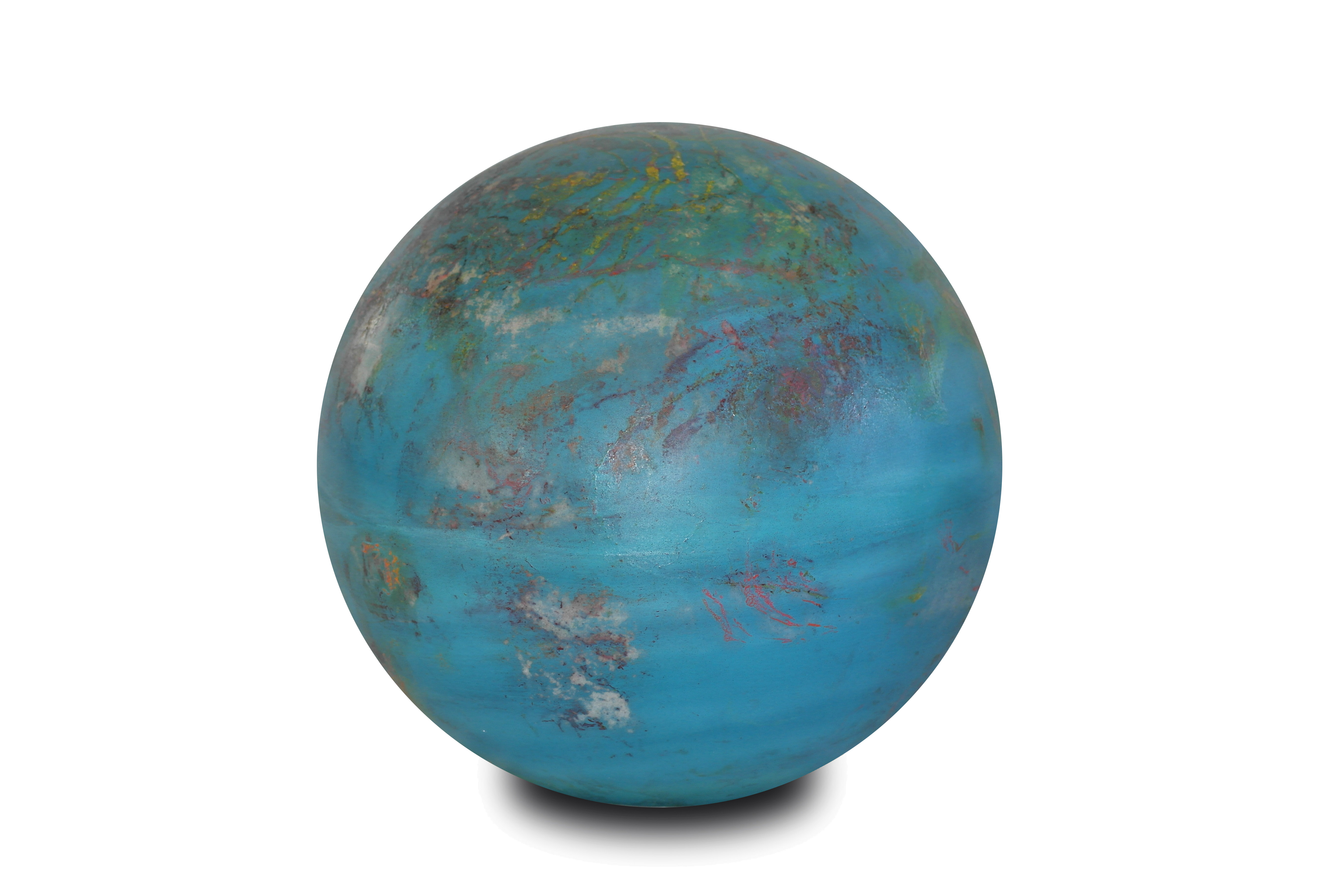 Poliüretan glop üzerine el boyaması olan “Lab12” mavi yoğunluklu rengi ve atmosferindeki rüzgarları anlatan beyaz tonlarıyla ile bir gaz gezegen gibi.