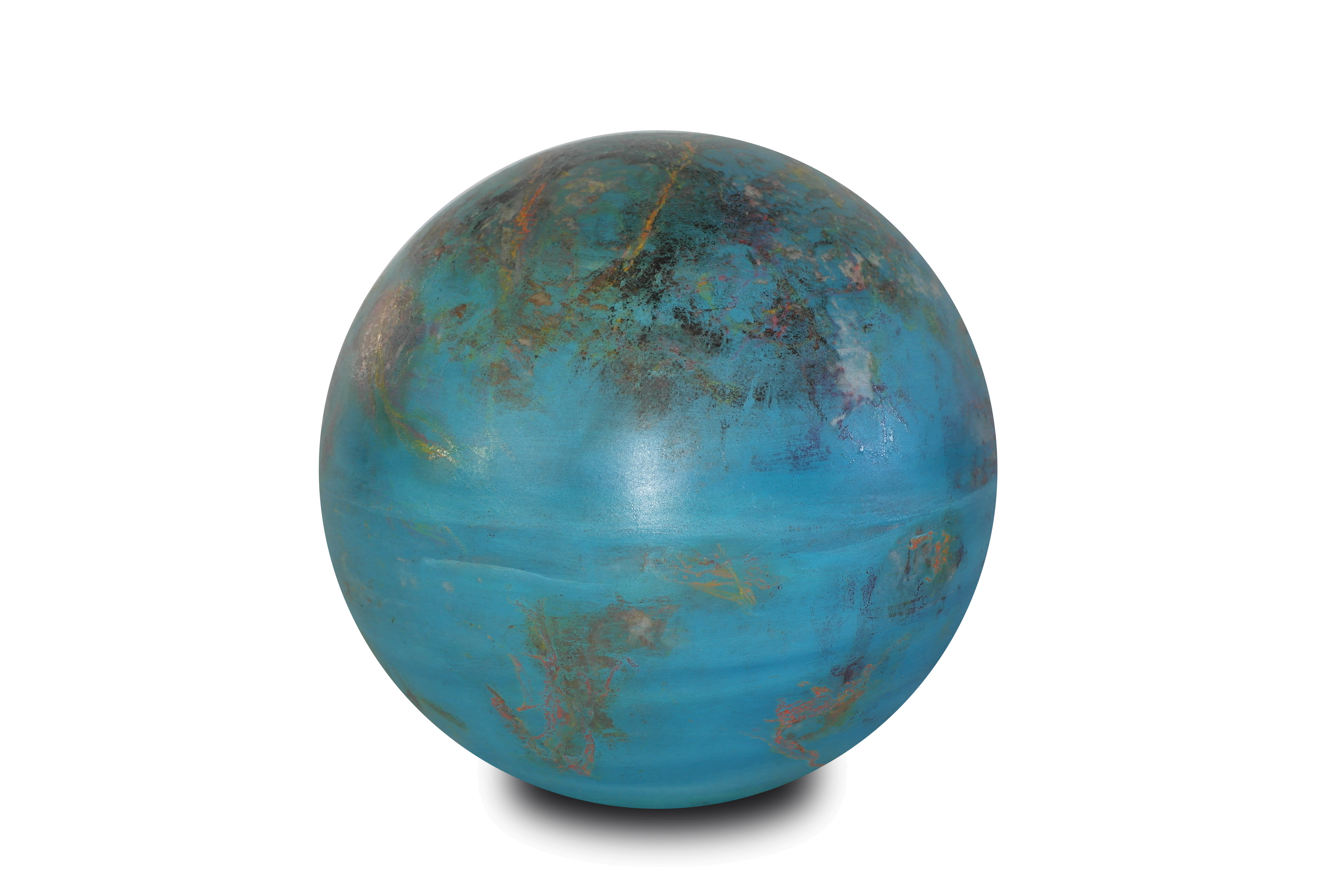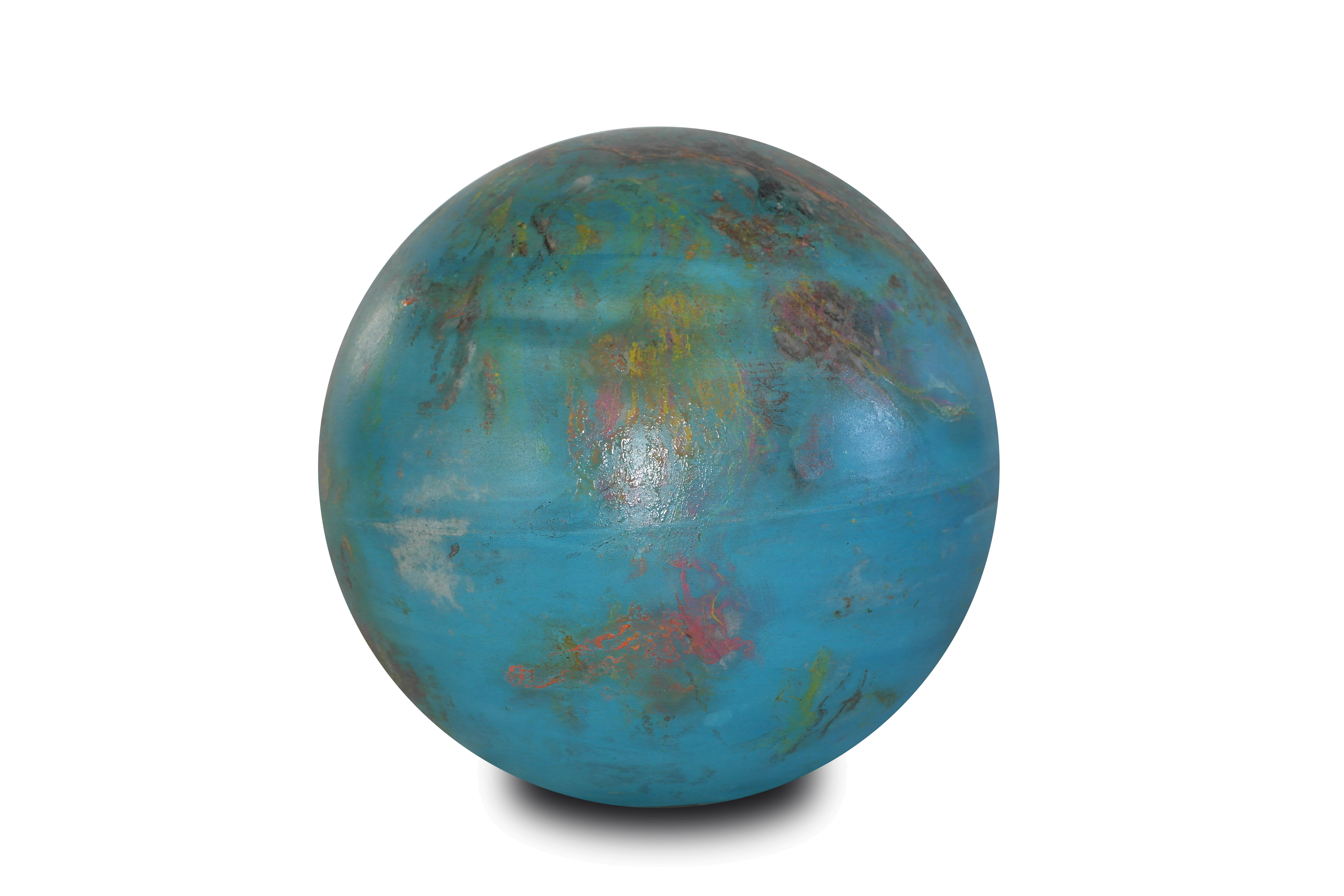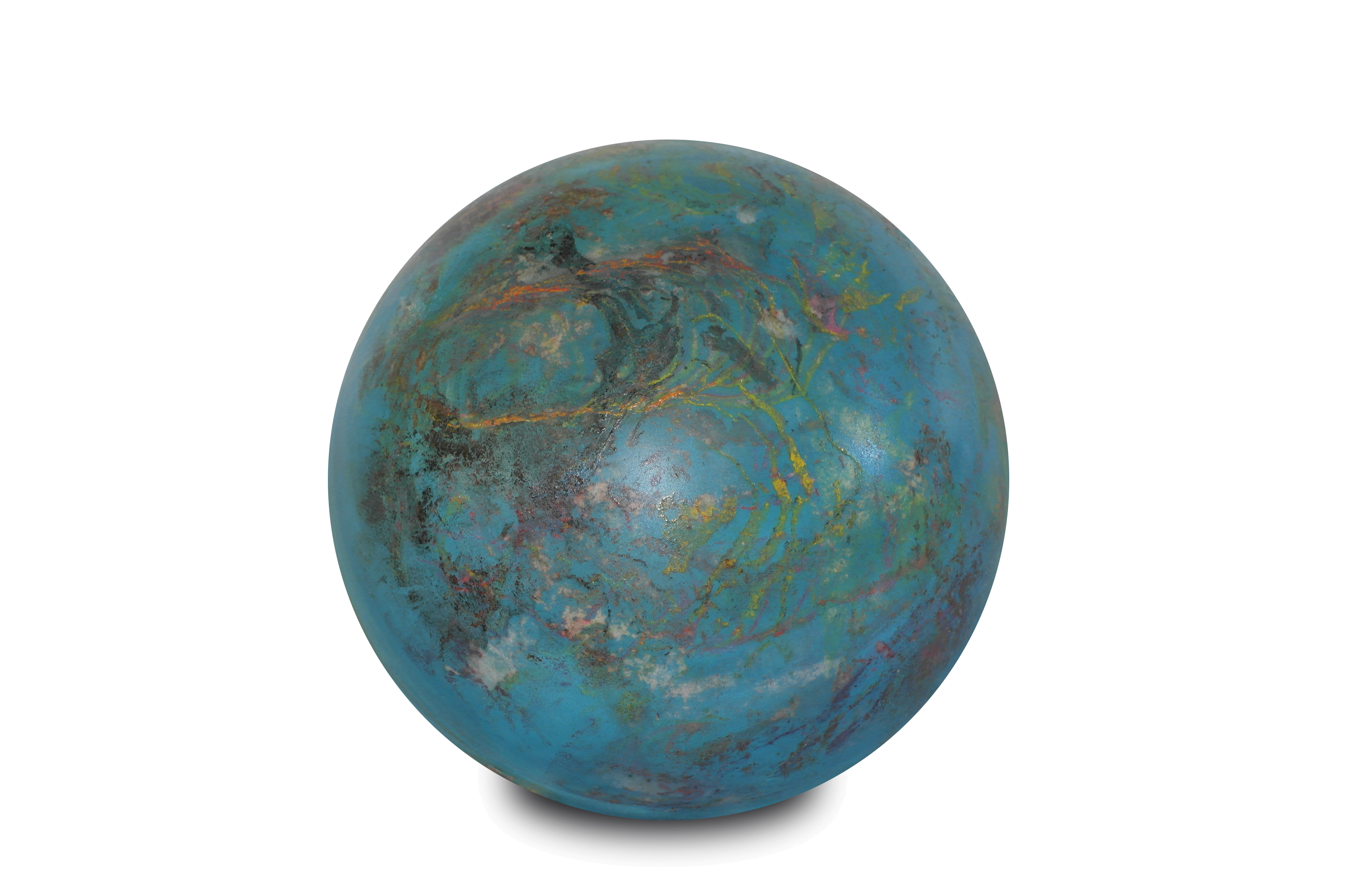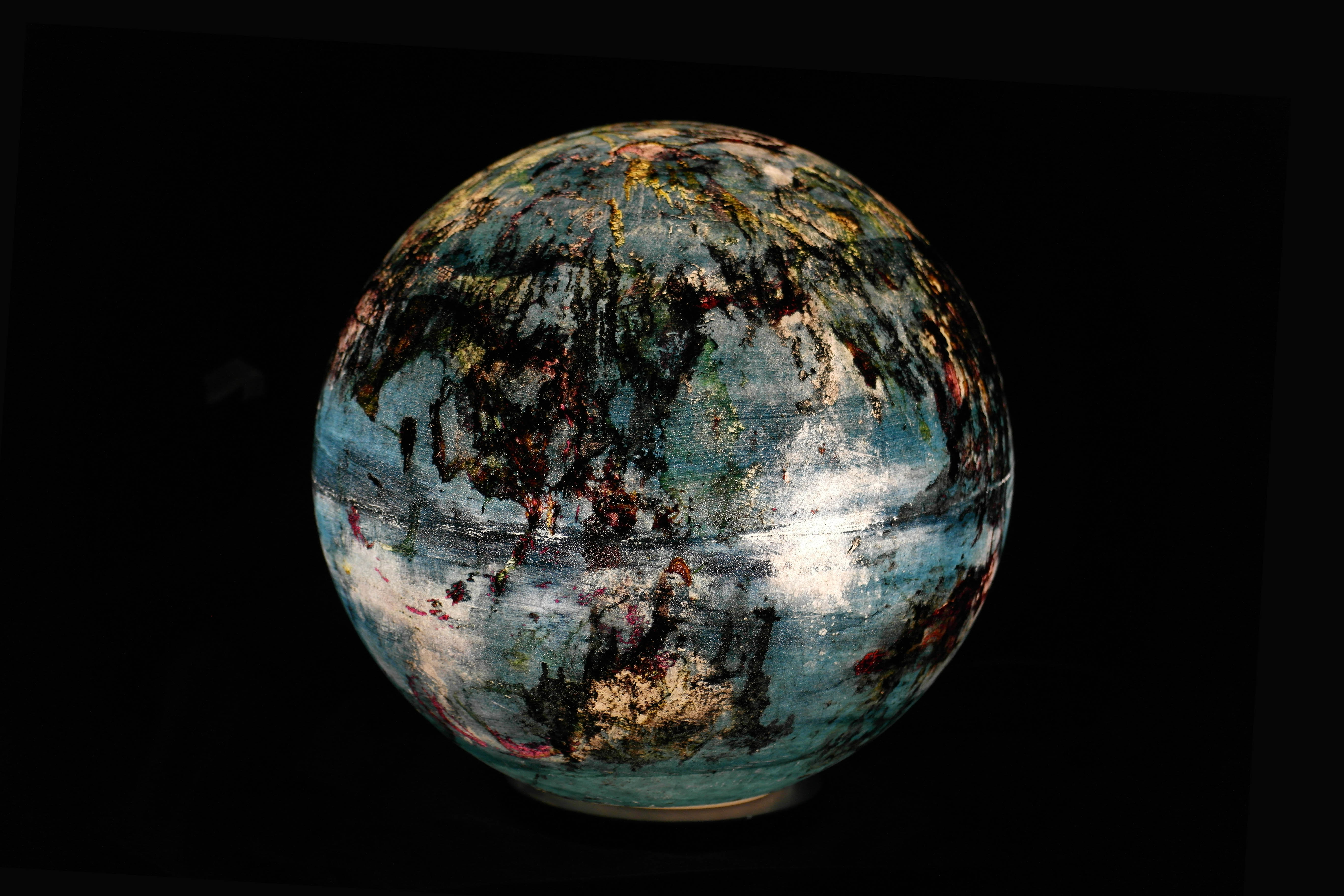 Poliüretan glop üzerine el boyaması olan “Lab12” mavi yoğunluklu rengi ve atmosferindeki rüzgarları anlatan beyaz tonlarıyla ile bir gaz gezegen gibi.